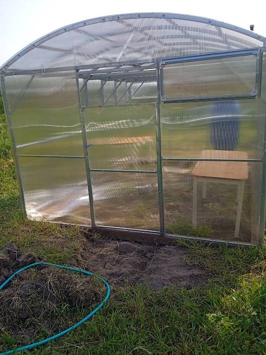 Отзыв: Во-первых, понравился внешний вид, во-вторых, считаю, что прямостенные теплицы выдерживают большую снеговую нагрузку, в-третьих, теплица просторная. До этого у меня были теплицы поуже, поэтому в этот раз выбрал широкую, трехметровую. Теплицу купил специально под высокие помидоры. Будет две грядки и дорожка посередине.